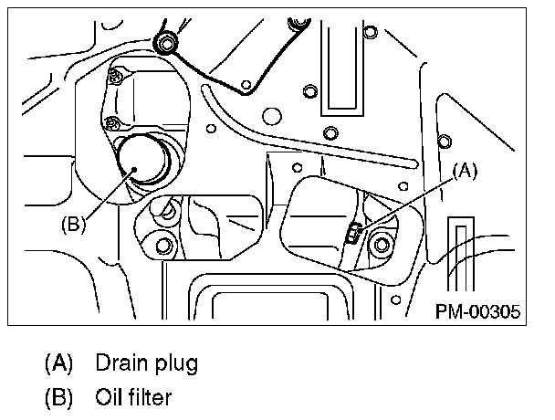 NOTE: Prepare the container for draining of engine oil.