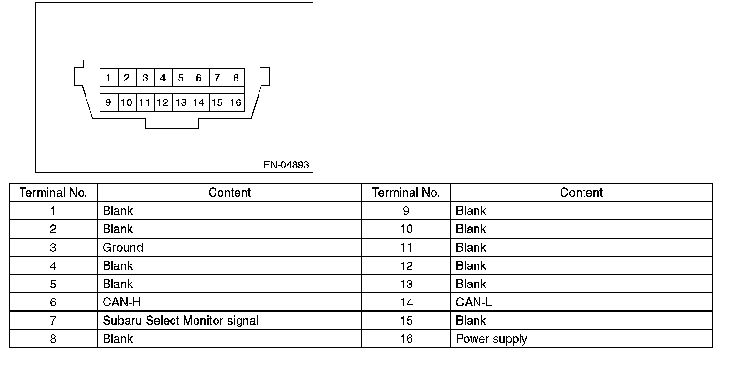 NOTE: This connector is used both for general scan tools and the Subaru Select Monitor.
