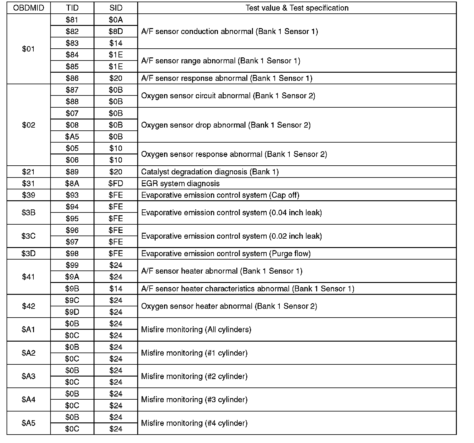 Refer to the test value of troubleshooting and data of test specification on the support data bit sequence table. A list of the support data is shown in the given table.