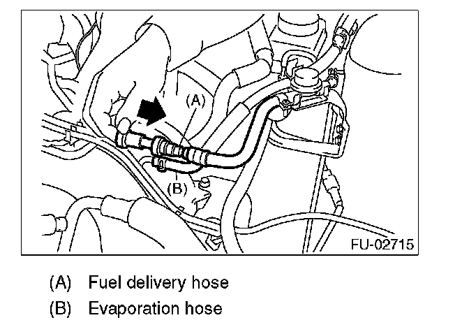 5. Disconnect the fuel delivery pipes and hoses, and then disconnect the evaporation pipes and hoses.