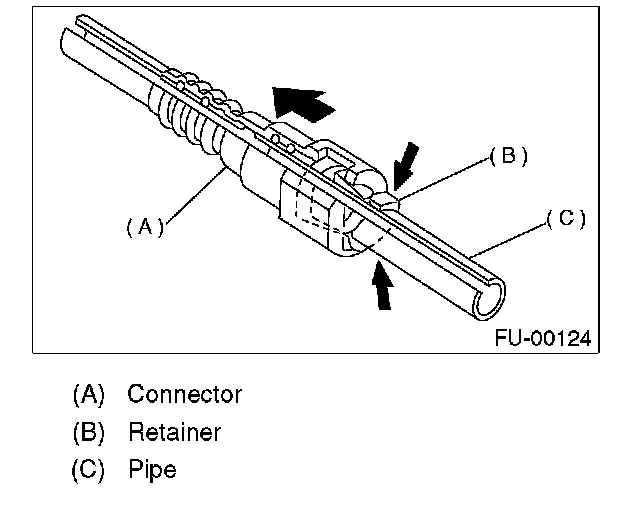 1. Set the new retainer (B) to connector (A).