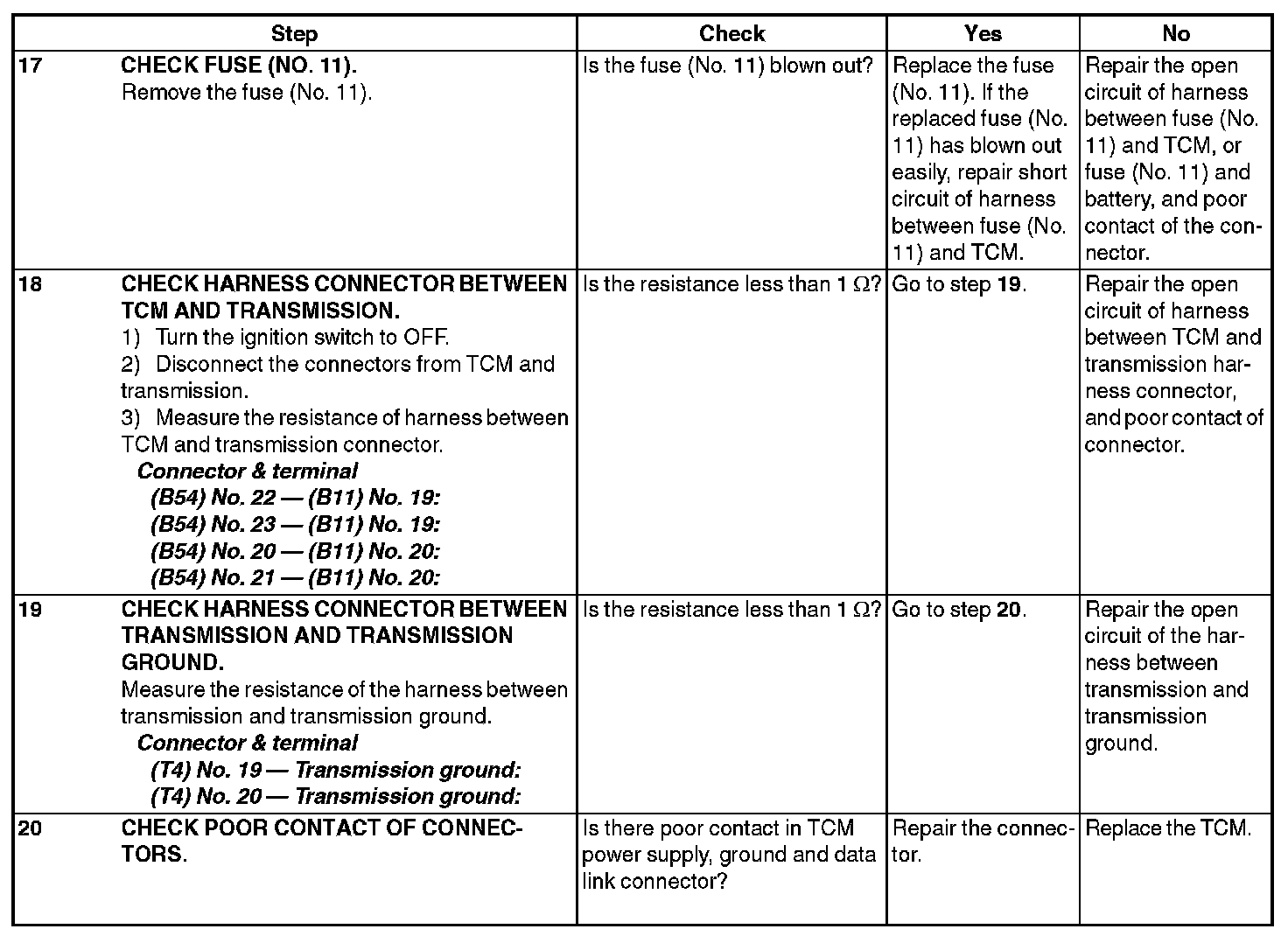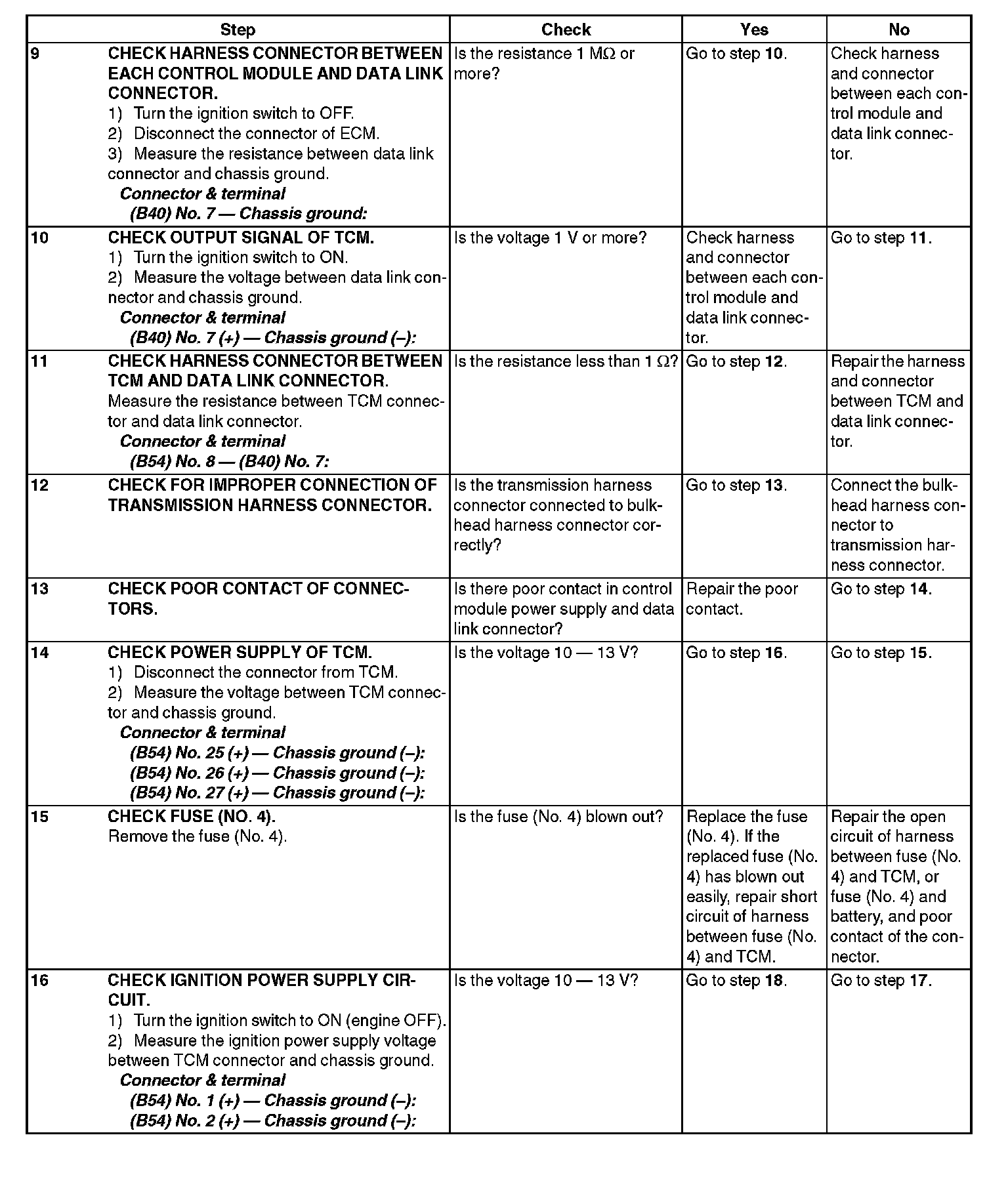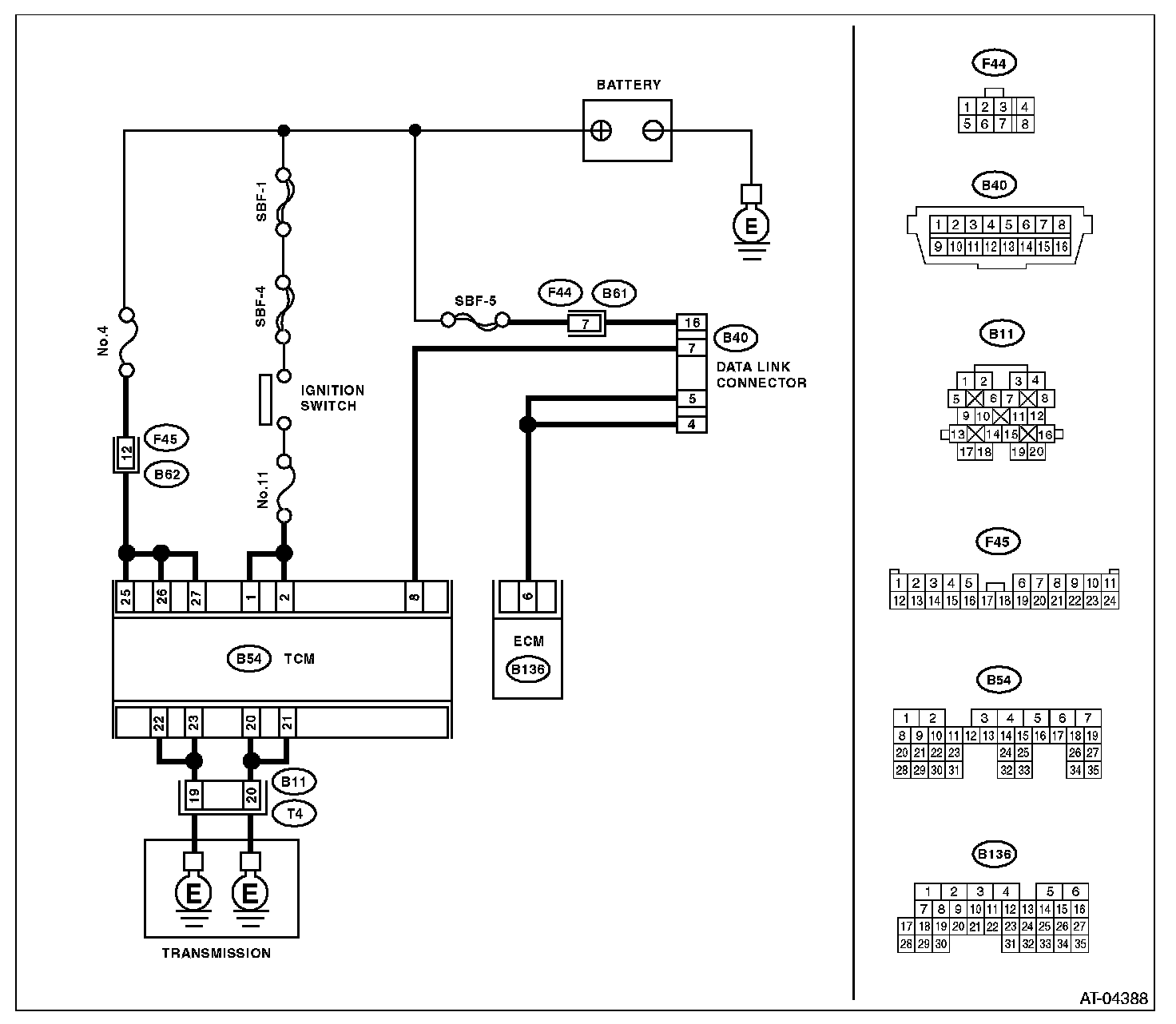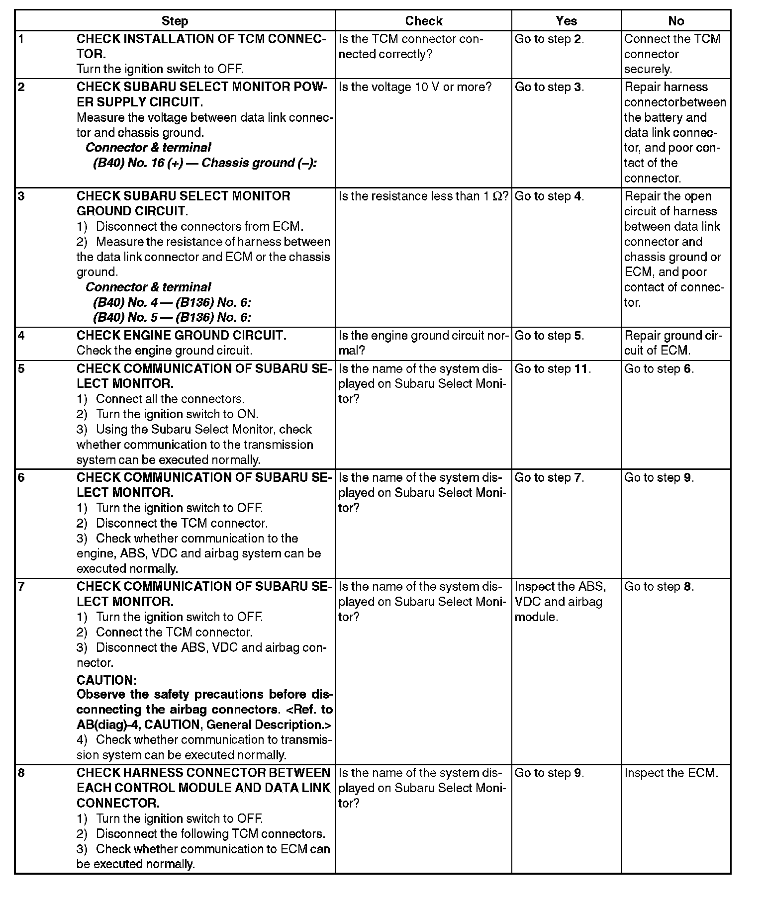 COMMUNICATION FOR INITIALIZING IMPOSSIBLENOTE: If the AT OIL TEMP warning light turns on when the Subaru Select Monitor or general scan tool is connected, perform the following procedures.