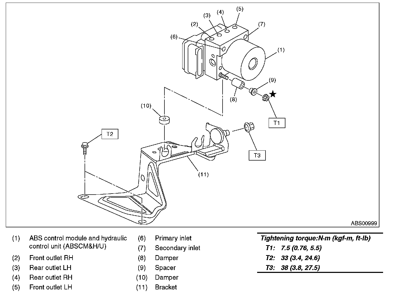 6) Disconnect the brake pipes from the ABSCM&H/U.