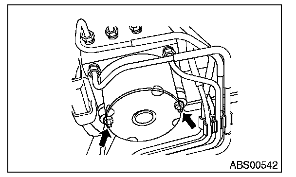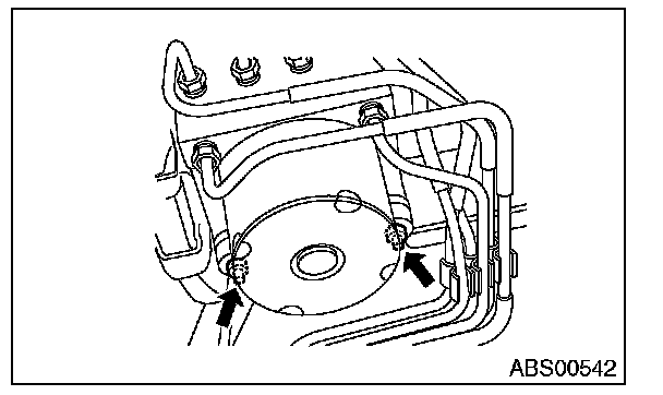 2) To prevent entry of foreign objects and brake fluid leakage, plug the oil pressure port of the ABSCM&H/U using a screw plug, etc.