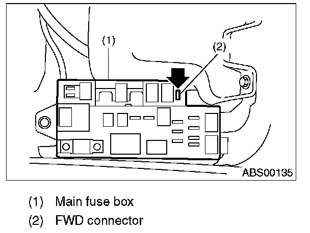 1) In the case of AWD AT models, install a spare fuse to the FWD connector in the main fuse box to simulate FWD vehicles.