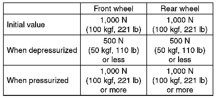 7) Read values indicated on the brake tester and check if the fluctuation of the values between decompression and compression meets the standard values.