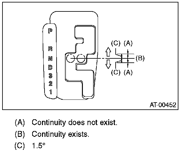 3) Check if there is continuity at equal points when the select lever is turned 1.5° to the "R" and "D" ranges from the "N" range.