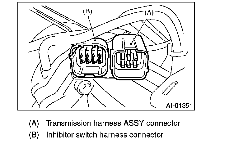 8) Insert the inhibitor switch and transmission harness connector onto the stay.