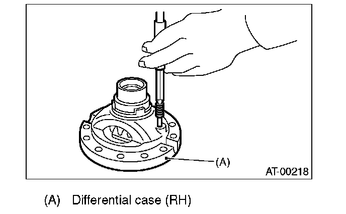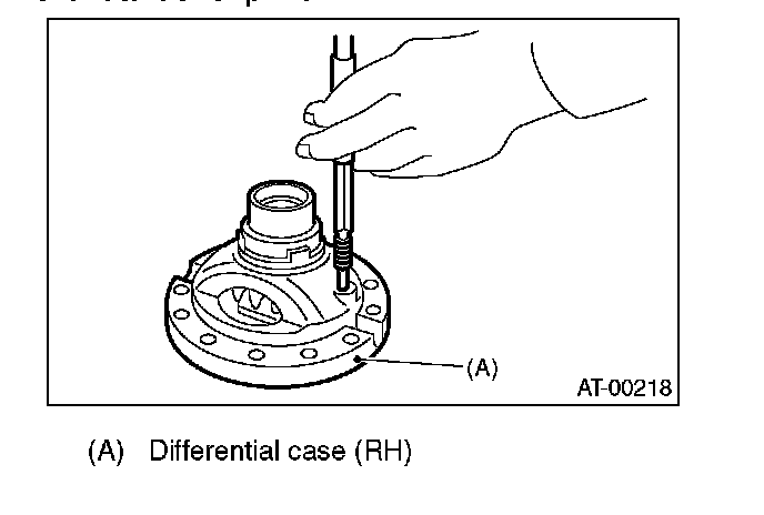 1) Install the washer, differential bevel gear and differential bevel pinion in the differential case (RH). Insert the pinion shaft.