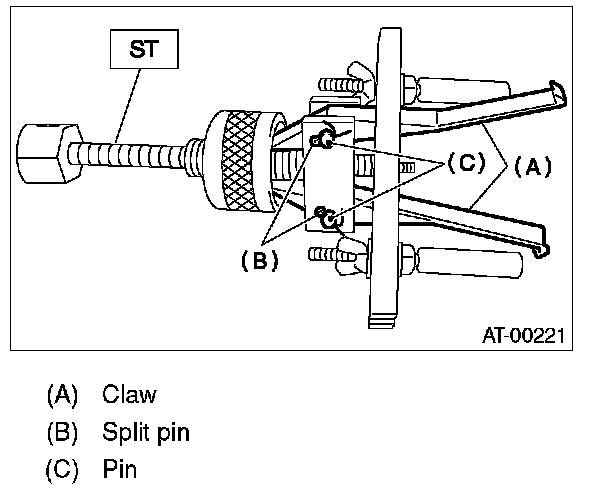 4) Attach two claws to the outer race, and set the ST to the differential side retainer.