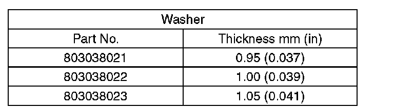 3) If the backlash is out of specification, select a washer from the table below.