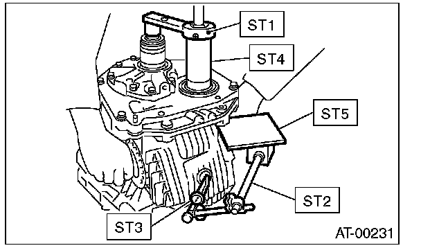 5) Rotate the drive pinion a few times using ST1 and ST2.