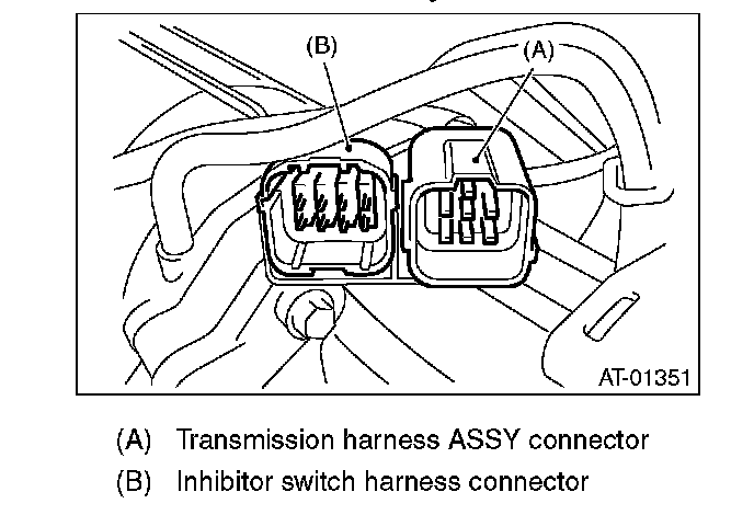 4) Lift up the lever on the rear side of transmission harness connector, and then disconnect it from the stay.