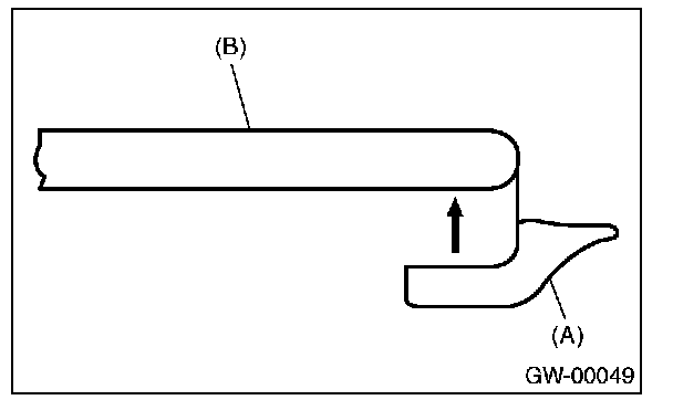 1. Install a new rubber strip (A) in position with the edge (B) of the rear gate glass.