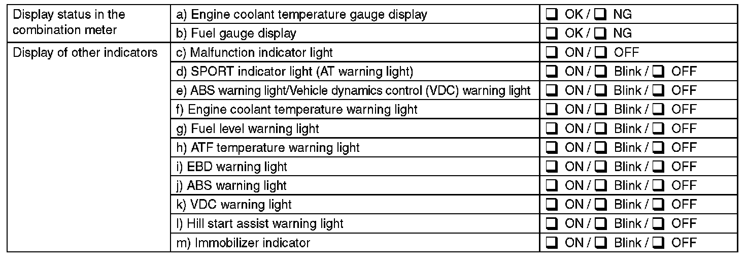DISPLAY STATUS IN THE COMBINATION METER