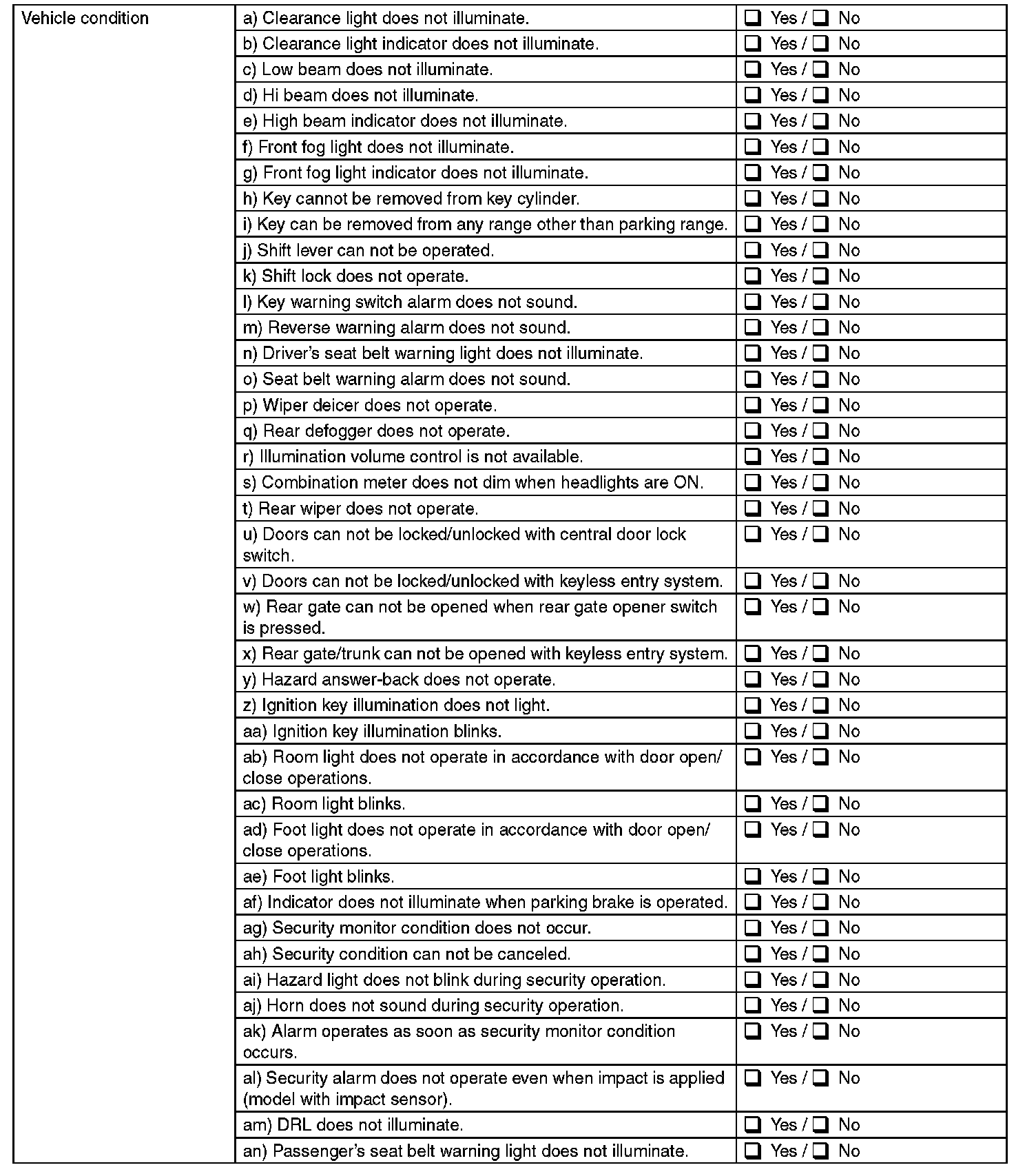 Inspect the following item about the vehicle s state.