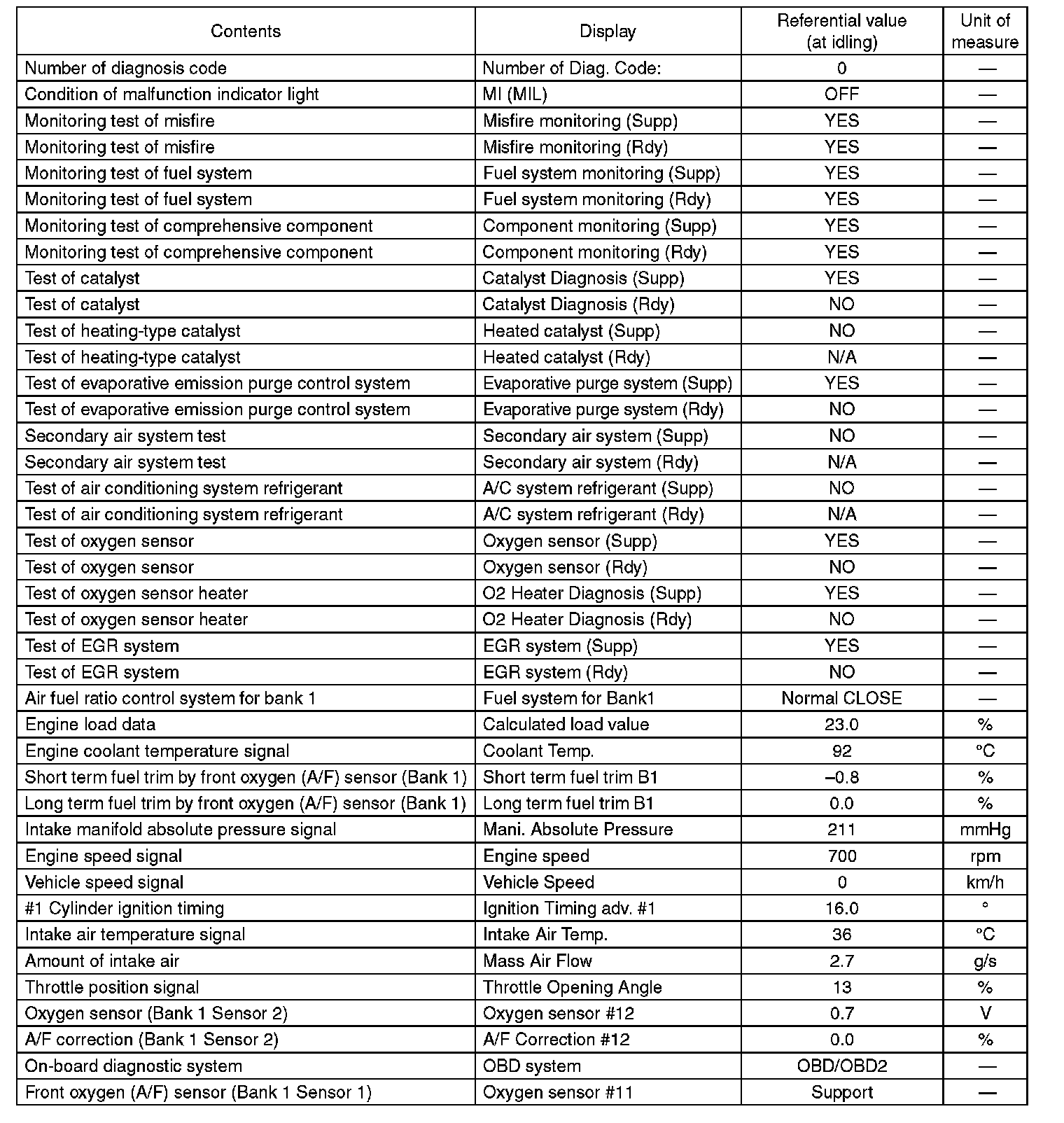 5. READ CURRENT DATA FOR ENGINE (OBD MODE)