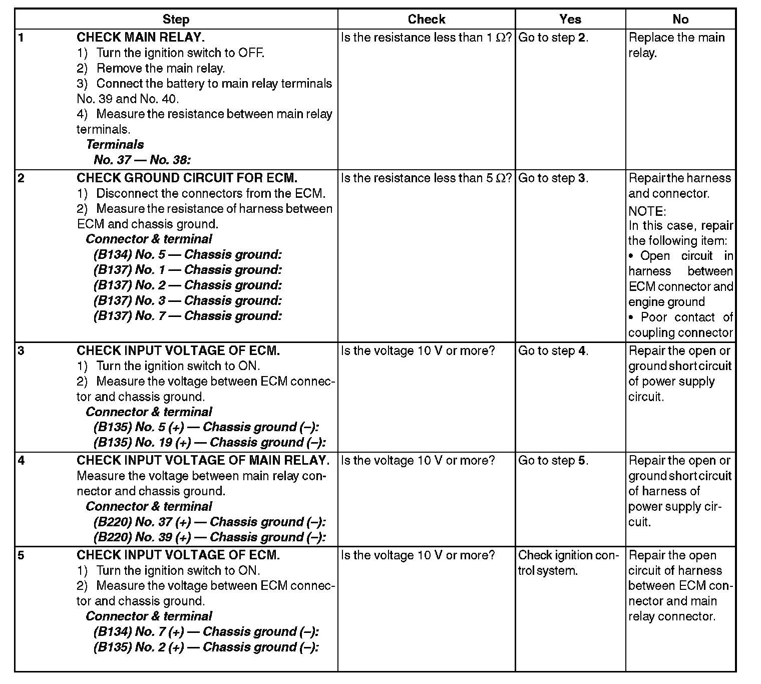 Check Power Supply and Ground Line of Engine Control Module (ECM)