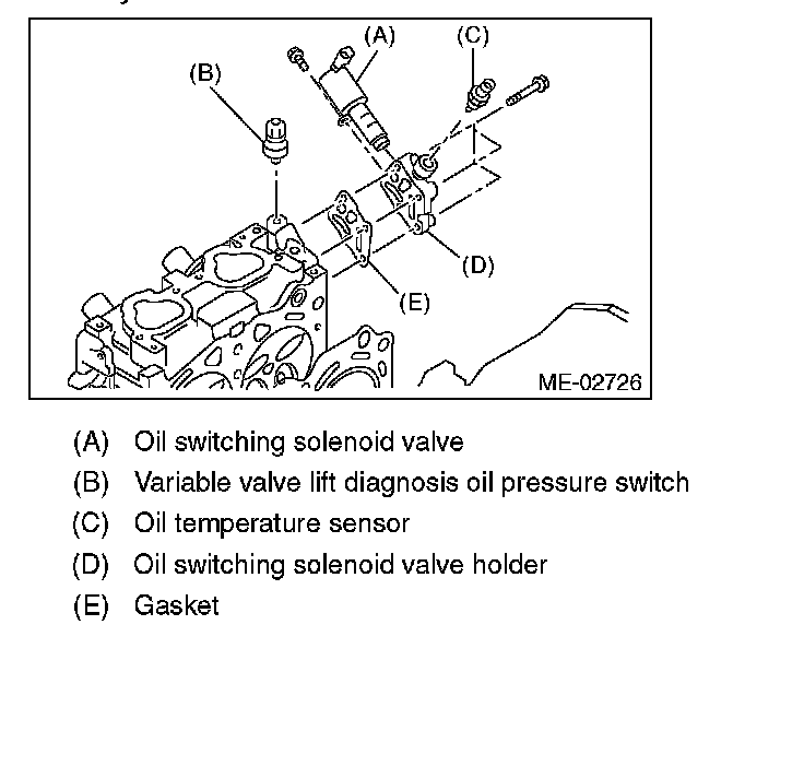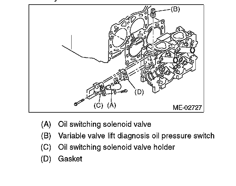 ^ Install the oil switching solenoid valve to the holder, then install it to the cylinder head.