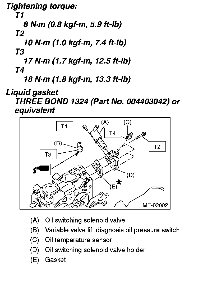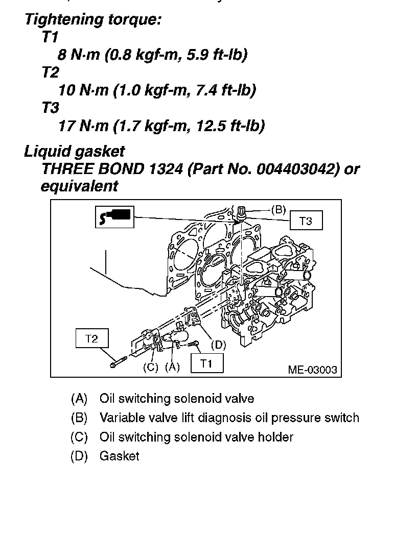 ^ Apply liquid gasket to variable valve lift diagnosis oil pressure switch threads.