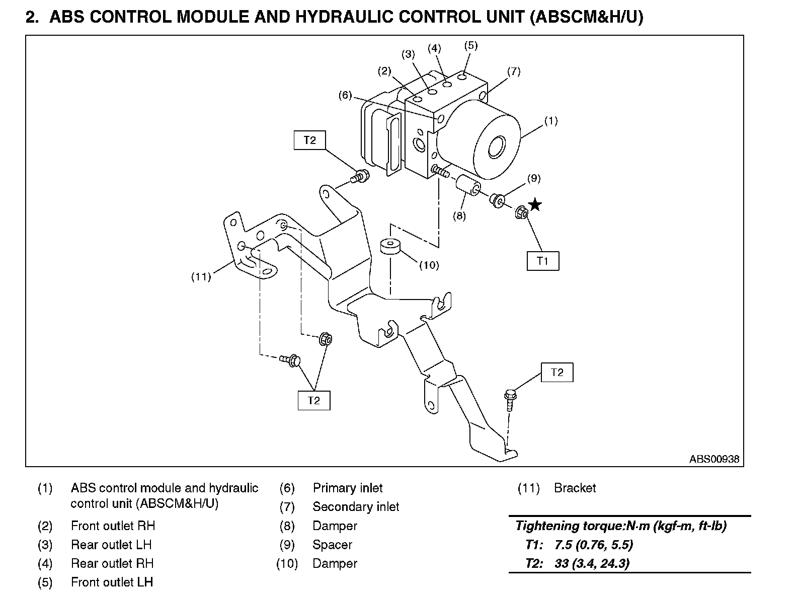 ABS CONTROL MODULE AND HYDRAULIC CONTROL UNIT (ABSCM & H/U)REMOVAL