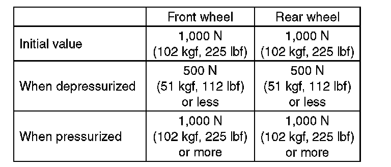8) Read values indicated on the brake tester and check if the fluctuation of the values between decompression and compression meets specification.