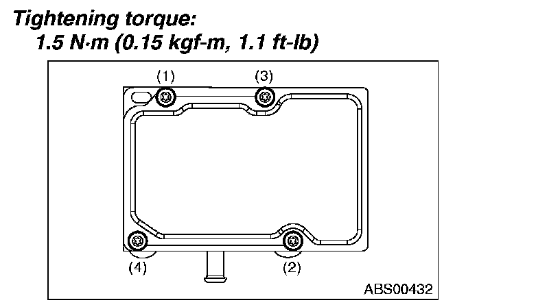 11) Using a TORX(R) bit E5, tighten the screws in the order of (1) through (4) again.