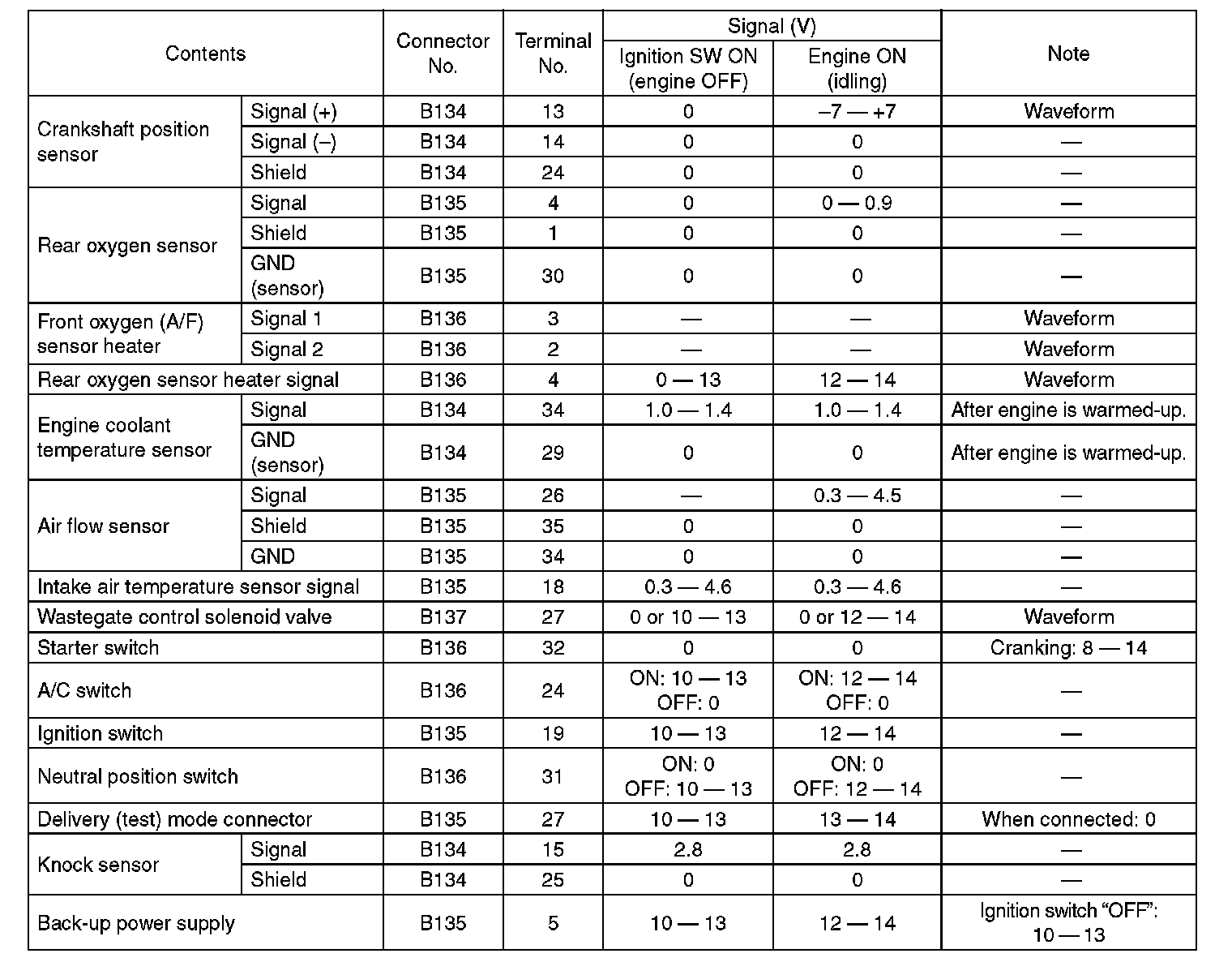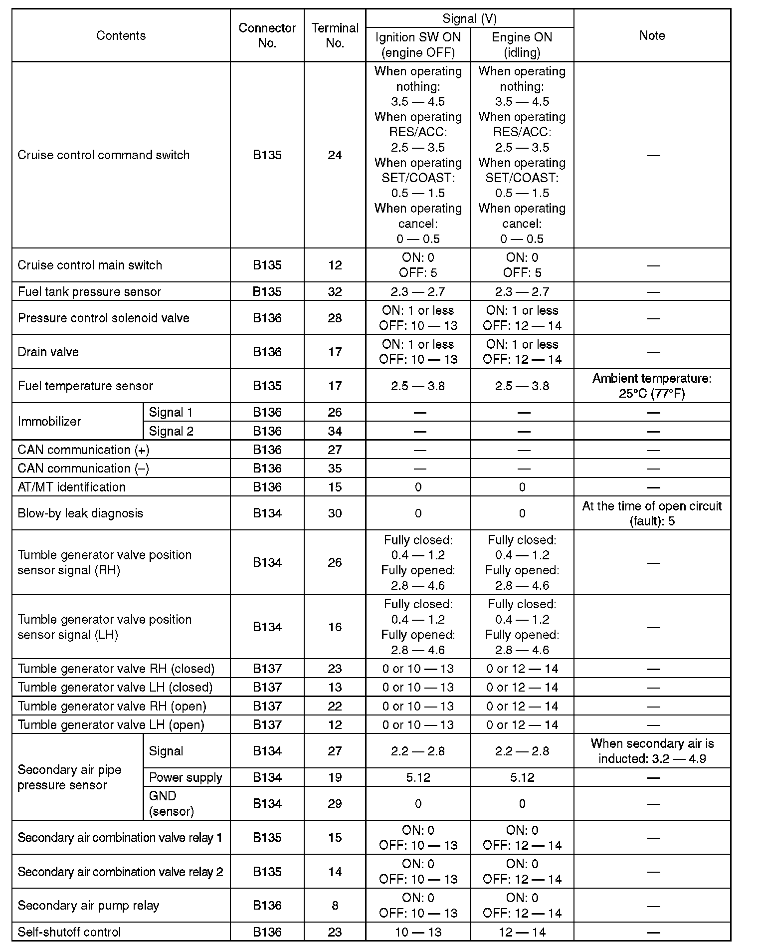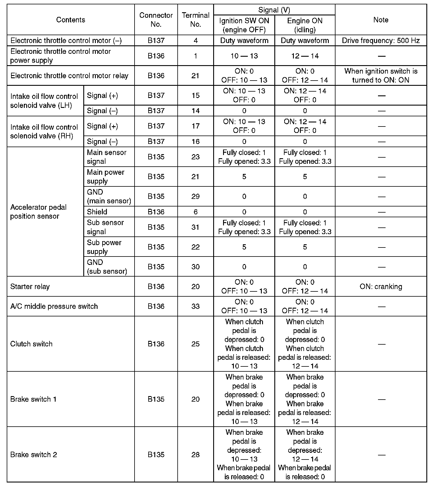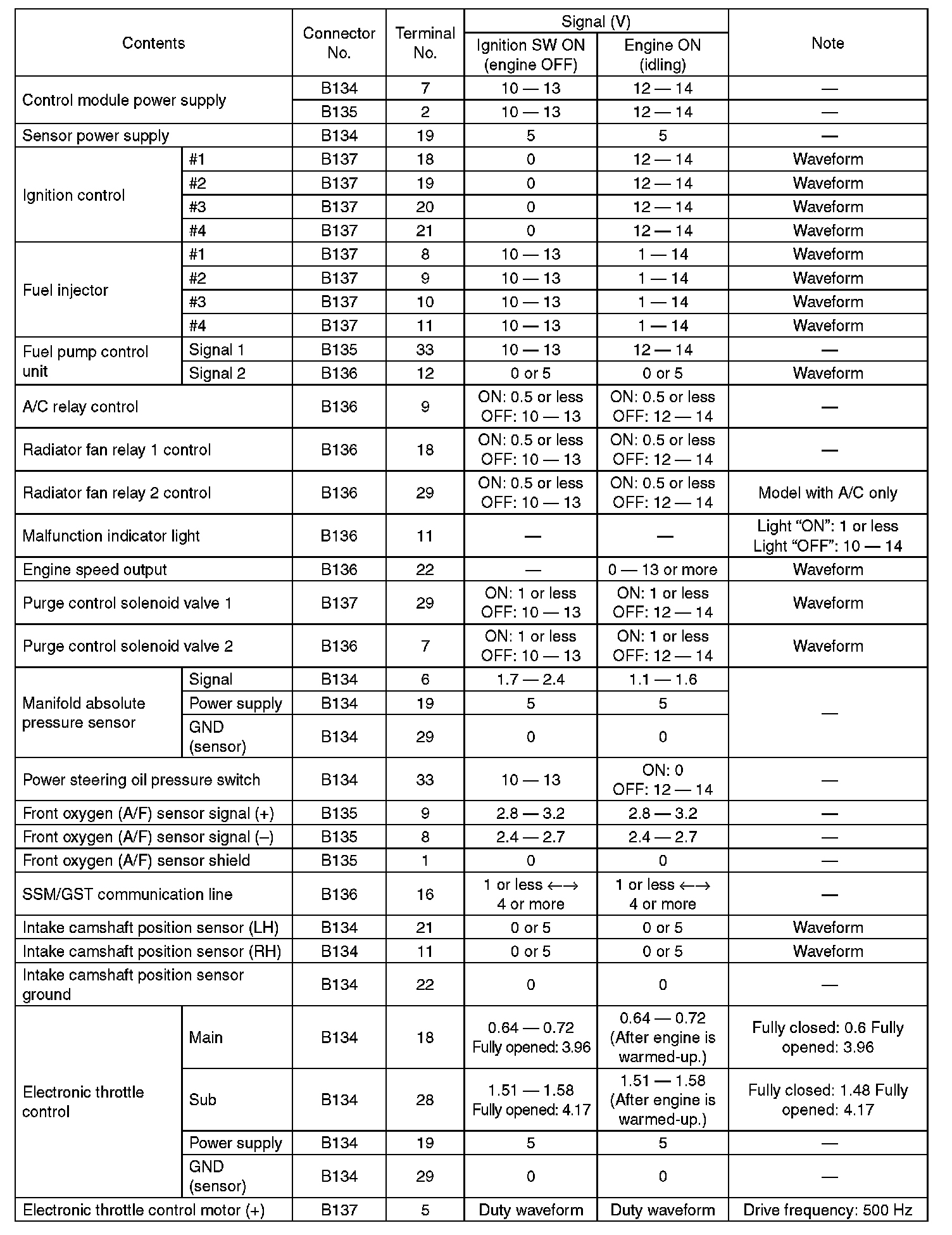 Engine Control Module (ECM) I/O Signal-Electrical Specification (Part 5):