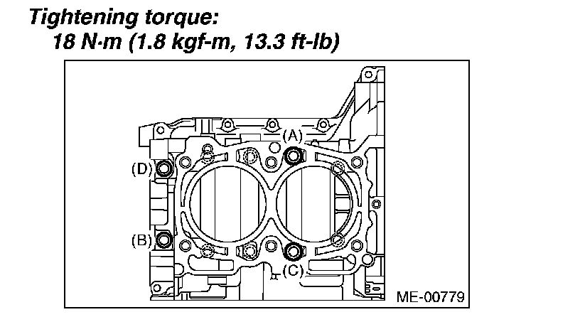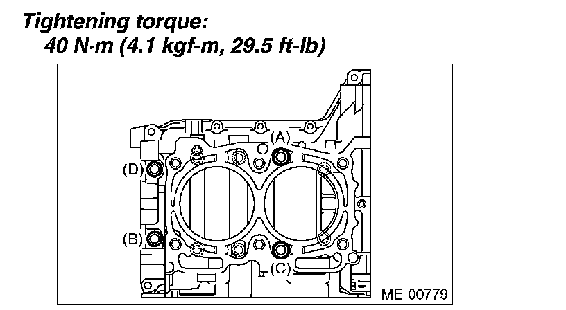 Tighten the LH side cylinder block connecting bolts (A - D) further in alphabetical order.