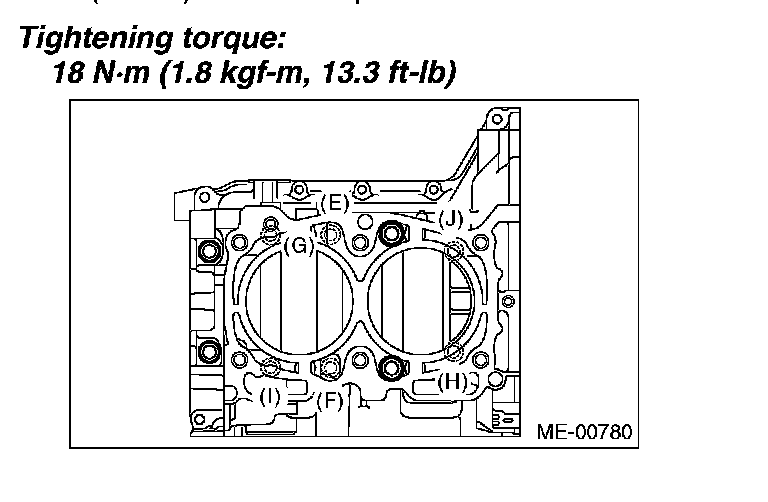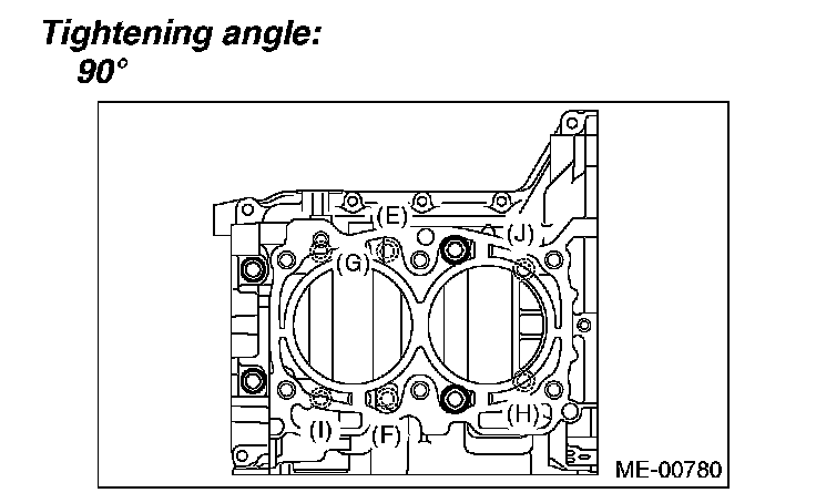 Tighten the RH side cylinder block connecting bolts (E - J) further in alphabetical order.