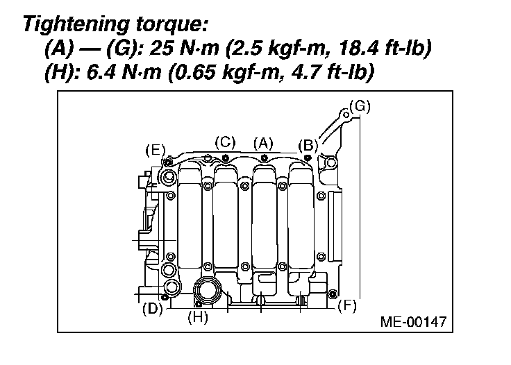 Further tighten all bolts to 69 N-m (7.0 kgf-m, 50.9 ft-lb) in alphabetical order.