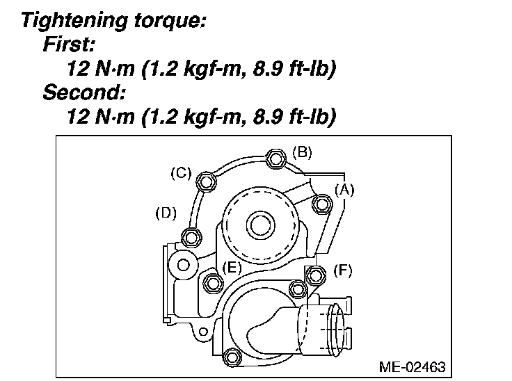 Tighten all bolts to 49 N-m (5.0 kgf-m, 36.1 ft-lb) in alphabetical order.
