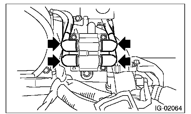 4. Remove the bolt which secures the ignition coil and ignitor assembly to the intake manifold.