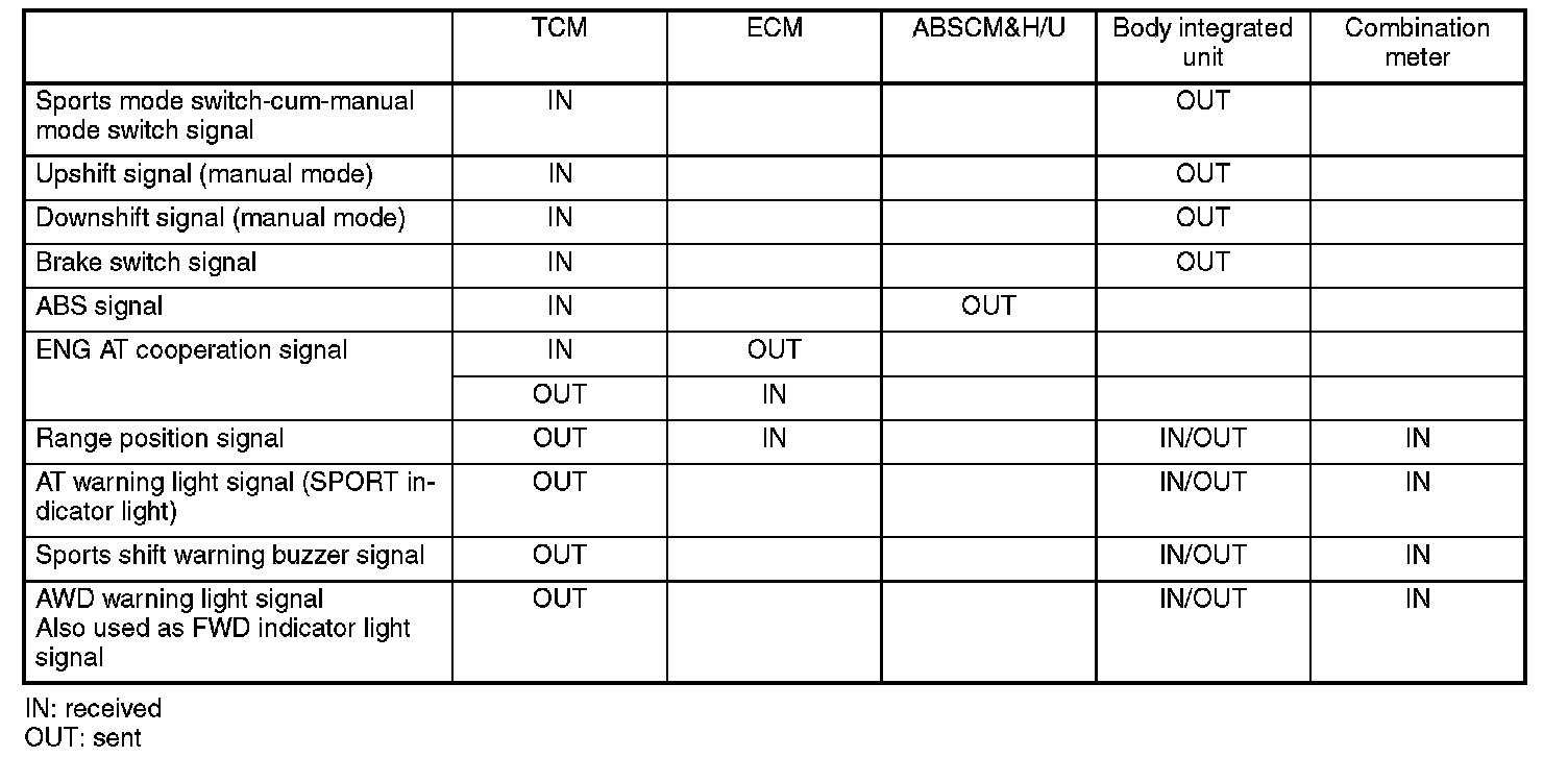 CAN COMMUNICATION SIGNALS CONTROLBy interchanging information between control modules such as the TCM, ECM, ABSCM & H/U, etc., the modules are controlled in accordance with the vehicle's driving conditions.