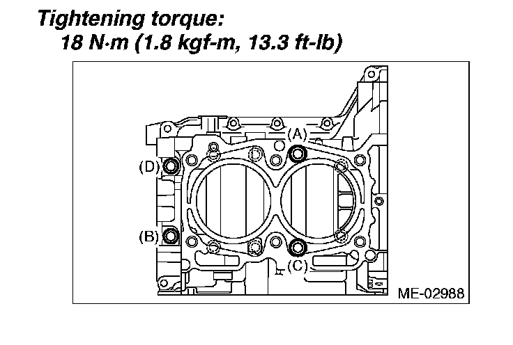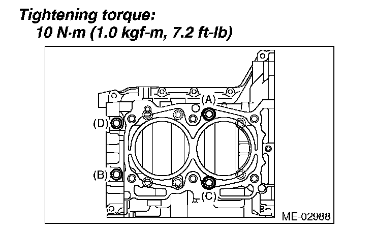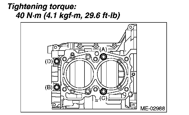 Tighten the LH side cylinder block connecting bolts (A D) further in alphabetical order.