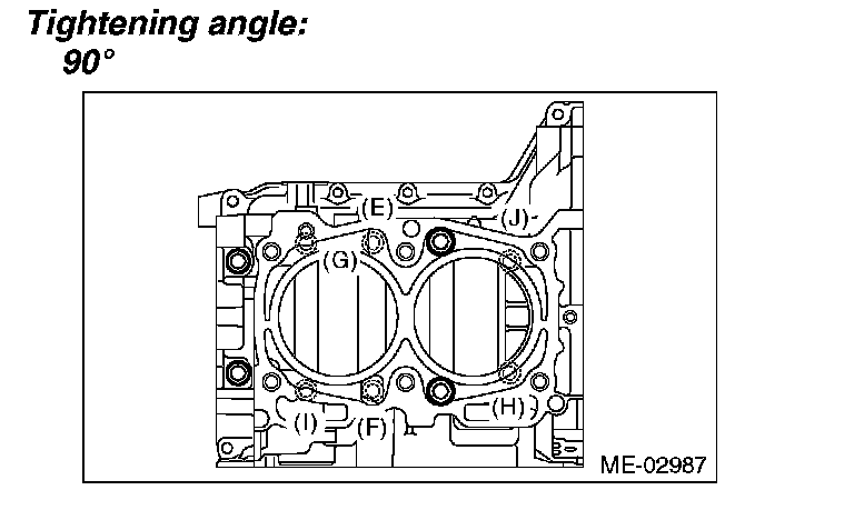 Tighten the RH side cylinder block connecting bolts (E J) further in alphabetical order.