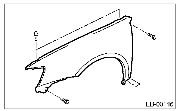 2. Install with attention to make uniform clearance between front fender panel and front hood panel. For the dimension of clearance, refer to "SPECIFICATION" in "General Description".