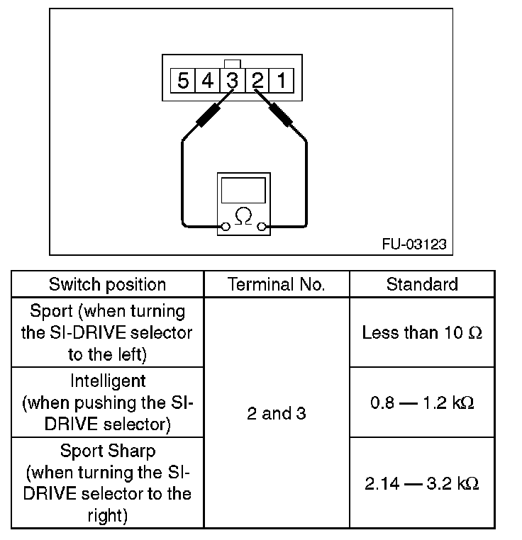 Measure the resistance between SI-DRIVE selector terminals.