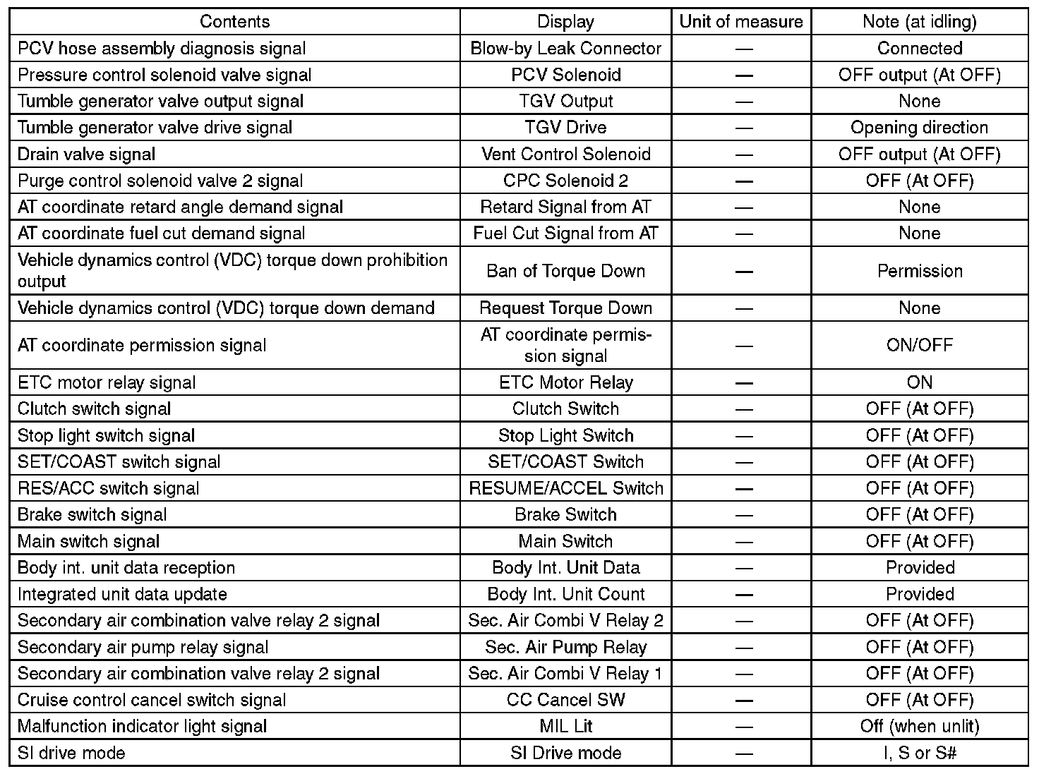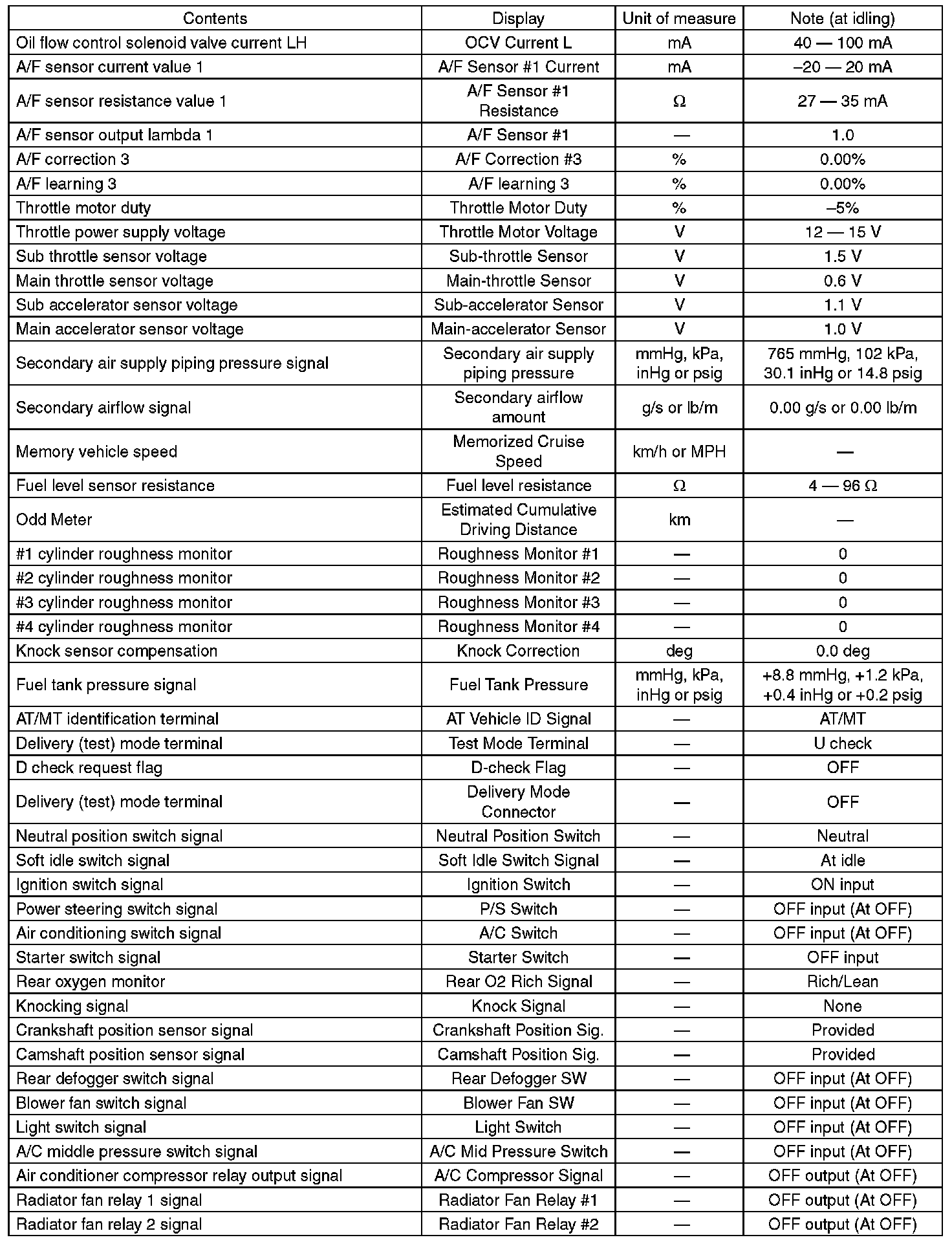 5. READ CURRENT DATA FOR ENGINE (OBD MODE)