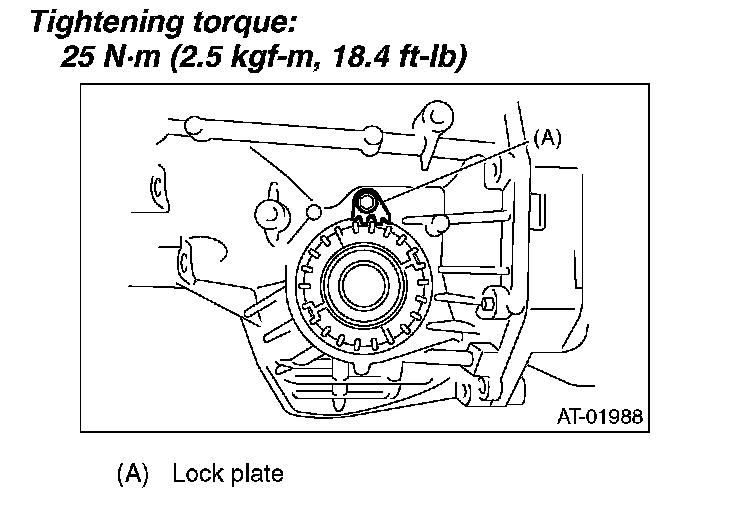 7) After the "zero" state is established, loosen the retainer LH by 3 notches and secure it with the lock plate. Then loosen the retainer RH and retighten until it stops. Rotate the drive pinion 2 or 3 times. Tighten the retainer RH further 1-3/4 notches. This sets the preload. Finally, secure the retainer with its lock plate.