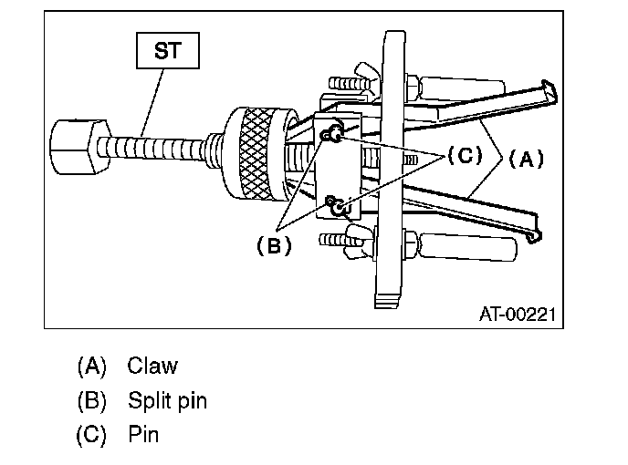 7) Remove the differential side retainers using ST. ST 18630AA010 WRENCH COMPL RETAINER