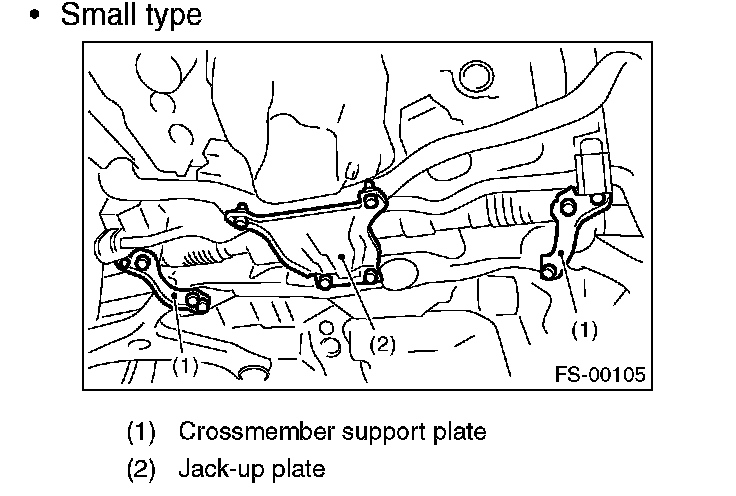 NOTE: Tighten the small type crossmember support plate together with stabilizer bracket.