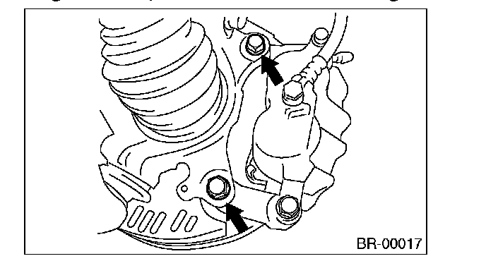 2) Remove the caliper body and the support from housing, and suspend it from the strut using a wire.