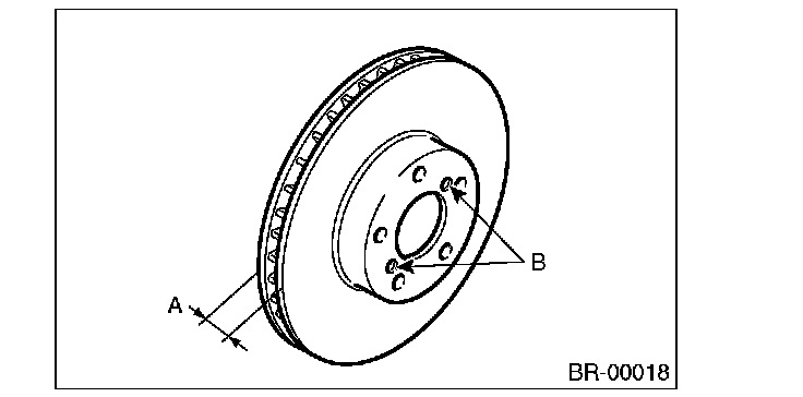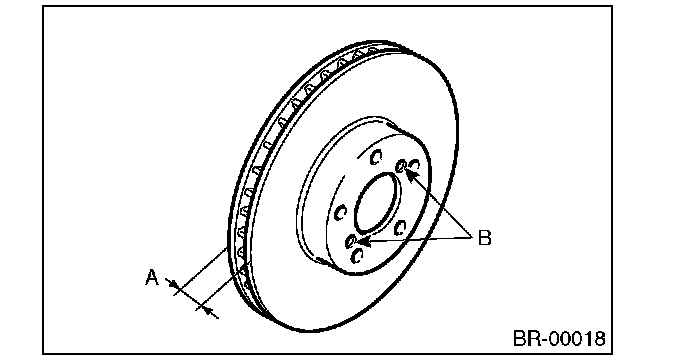 NOTE: If it is difficult to remove the disc rotor from the hub, drive an 8 mm bolt into the threaded section (B) of the rotor, then remove the rotor.