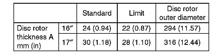 Disc rotor runout limit: 0.05 mm (0.0020 in)