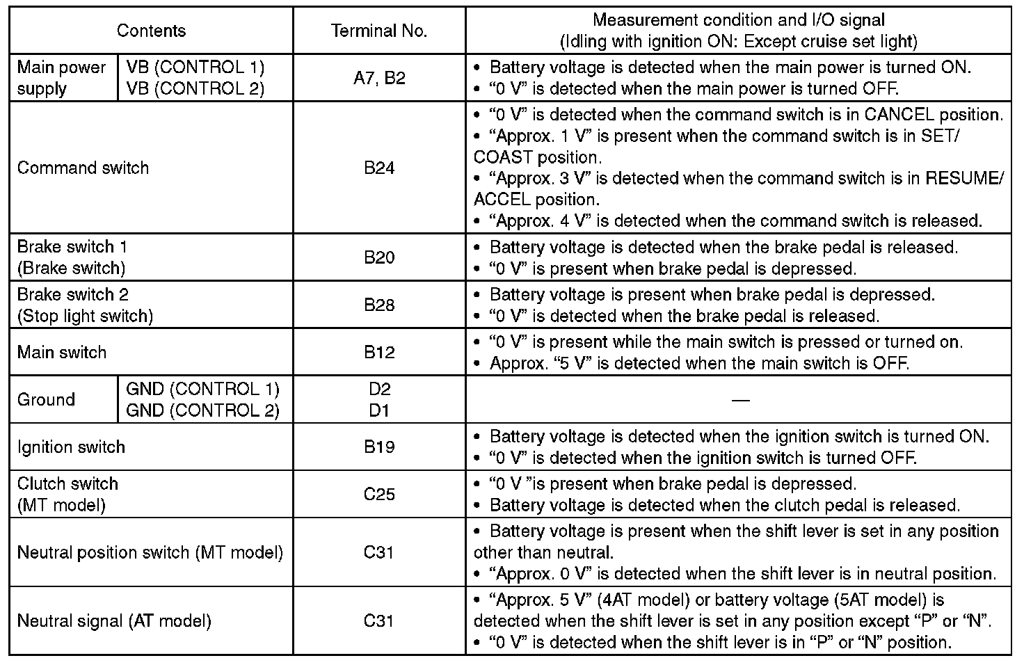 Pinout Values and Diagnostic Parameters