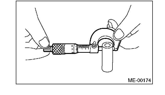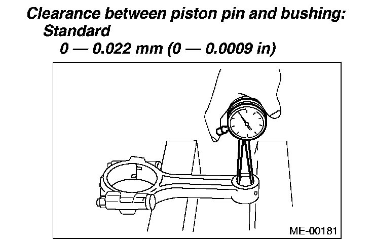 7) Measure the piston pin clearance at connecting rod small end. If the measured value is not within the standard, replace it with a new part.