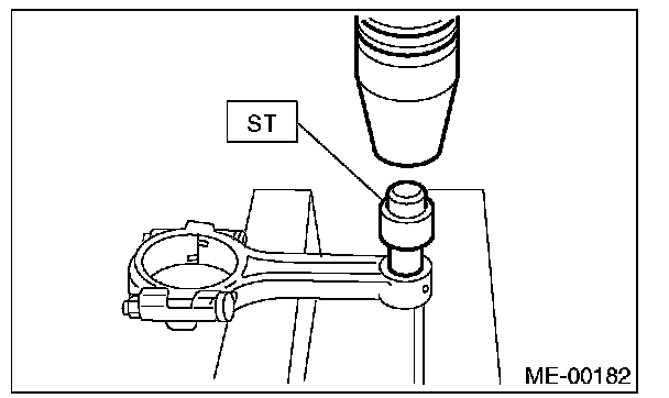 6) Inspect the bushing at connecting rod small end, and replace with a new part if worn or damaged.