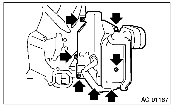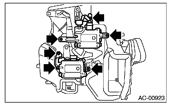4. Disconnect the connector, remove the screw and then remove the air-mix door actuator and mode door actuator.