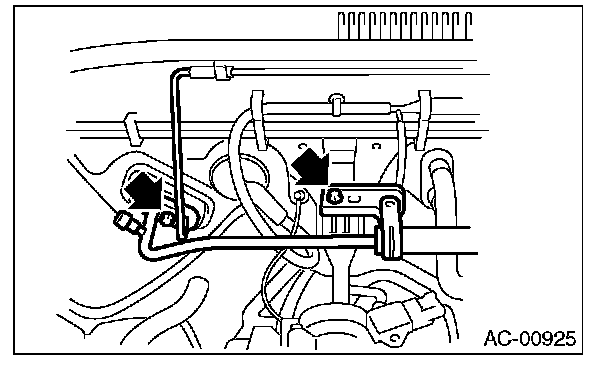 6. Remove the bolts securing expansion valve and pipe in engine compartment.